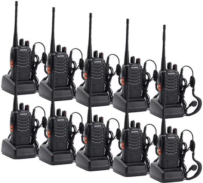 Baofeng BF-888S Ten Pack – портативна рація, яка має радіус роботи 5 км, завдяки потужності приймача в 5 Вт. Пристрій забезпечений Li-ion акумулятором ємністю 1500 мАг, чого вистачає на кілька днів роботи. Рація невелика і легка, без дискомфорту носиться на поясі. Працює в популярному в Україні UHF-діапазоні від 400 до 470 МГц. Ідеально підходить для використання в міській забудові.