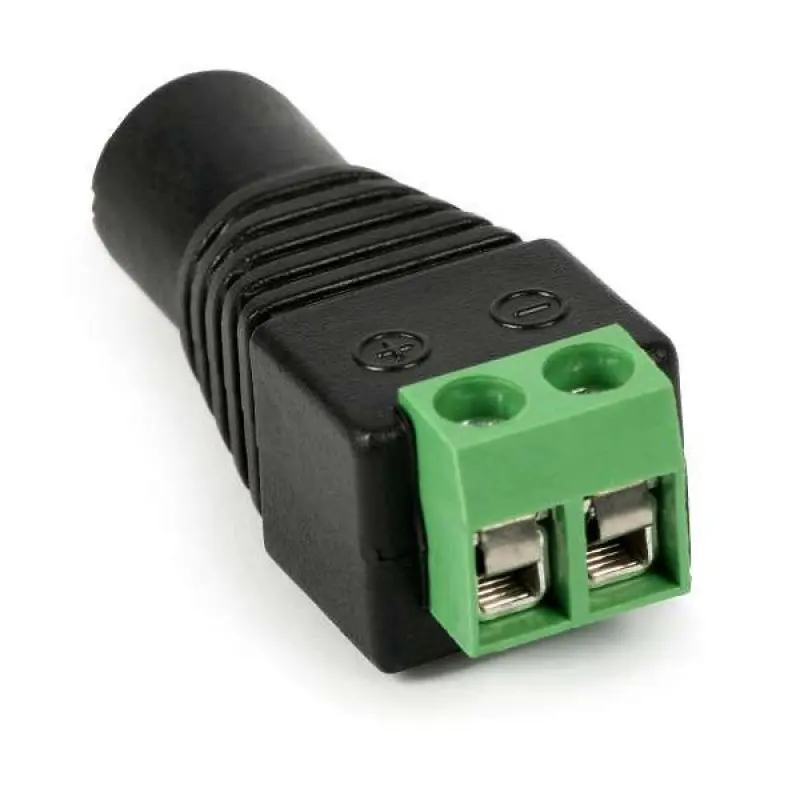 Роз’єм-power під зажим (мама) використовується у відеоспостереженні для підключення двох жил кабелю (вита пара, сигнальний) та подачі живлення на відеокамеру.